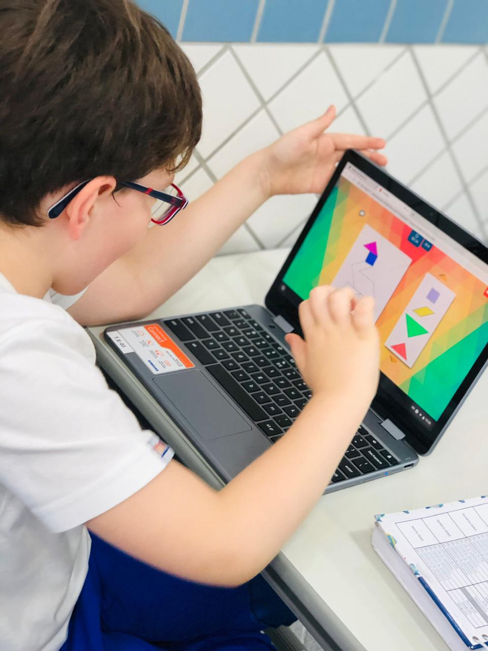 Com o uso de chromebooks, LEGO® Education, dinâmicas apresentadas pela plataforma com o objetivo de desenvolver o senso numérico, as habilidades de resolução de problemas, o espírito investigativo e o raciocínio lógico, tornamos o processo muito mais encantador e envolvente.